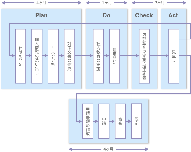 当財団では、取得後も貴組織の個人情報保護マネジメントシステムが継続的に行われるよう支援します。