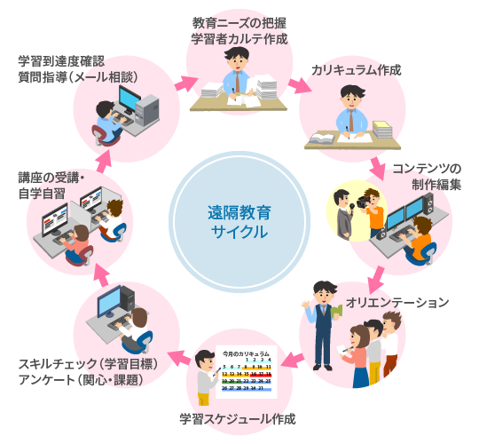 AVCCでは設立以来、半世紀にわたり教育システムの構築および運用支援、教材の制作指導を行ってきました。技術革新の変遷とともに、視聴覚教育・遠隔教育からオンライン学習まで、時代の先進的な教育サービスを提供し、遠隔教育の導入コンサルティングから、コンテンツ制作、学習者管理のノウハウ等、トータルにサポートいたします。